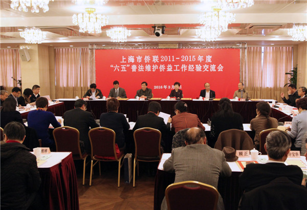 3月4日下午,上海市侨联2011—2015年度“六五”普法维护侨益工作经验交流会在市政协委员活动中心召开。中国侨联副主席、市侨联党组书 记、主席沈敏,中国侨联法顾委常务副主任、市侨联法顾委主任、市人大常委会原副主任王培生,市侨办副主任陈文佳,市侨联副主席徐大振,市侨联法顾委副主任 黄一超出席会议。市侨联法顾委委员、各区(县)侨联负责人、区(县)法顾委(团)代表及受表彰单位代表和个人80余人出席会议。